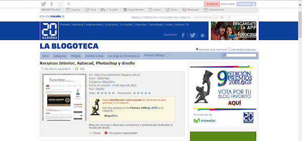 Bueno, a lo que vamos y es el fin de este post, es pedir a todas las personas que visitáis Recursos Interior que entréis a la web de 20 minutos y nos votéis. Para poder votar tienes que estar registrado, se tarda muy poco y a nosotros nos haría mucha ilusión, además seguiríamos con más ganas con este proyecto.