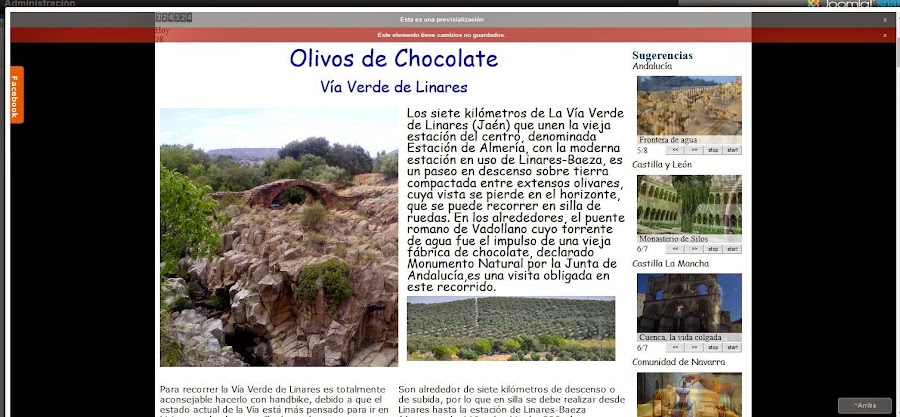 Y así lo vemos en una ventana emergente, cuando pinchamos en previsualizar, totalmente colocado en la web. Esta vista previa nos sirve para diseñar con precisión los contenidos de nuestra web y ajustar, por ejemplo, al ancho de la página los tamaños de las fotos. Hay que tener en cuenta que la previsualización es una ventana emergente en la que no podemos cambiar nada; sirve para ver como va a quedar y calcular en el artículo lo que hay que añadir, quitar o cambiar. La mejor forma, cuando el artículo tiene distintos componentes, es ir previsualizándolo constantemente. Así el resultado será estupendo y vuestra web quedará preciosa.