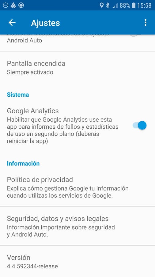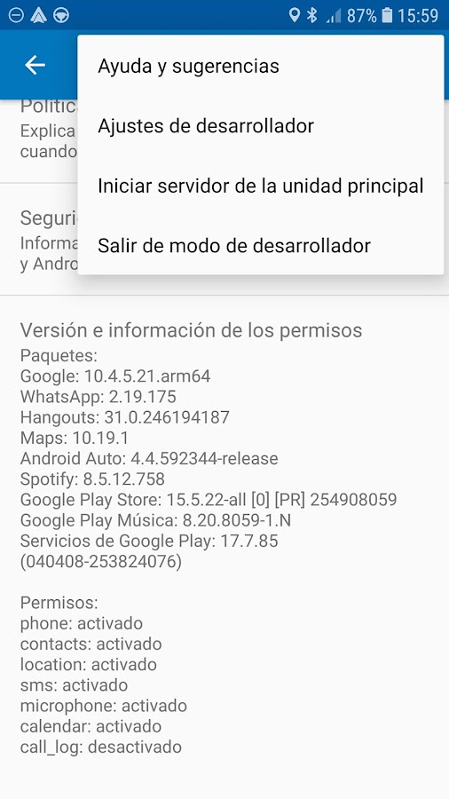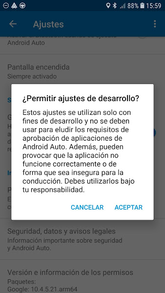 La opción 2 la he visto en varios vídeo tutoriales distintos pero en mi móvil en concreto no ha funcionado ya que la opción “Selecciona Acerca de Android Auto 10 veces” no me activaba el modo desarrollador, simplemente no hacía nada en mi terminal pero es verdad que en los vídeos sí se veía que funcionaba en otros terminales.