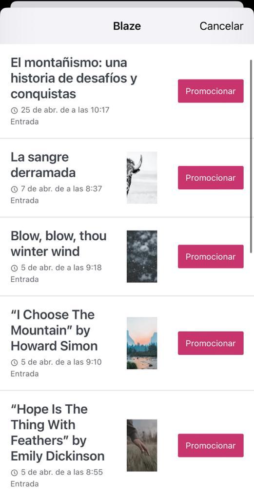 Por eso creamos Blaze, una herramienta que te permite promocionar tus publicaciones de forma rápida y sencilla. Con solo unos clics podrás convertir el contenido de tu blog de WordPress en atractivos anuncios que se publicarán en nuestra red de millones de blogs de WordPress.com y Tumblr.