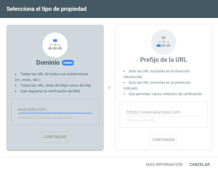 Simplemente con incluir el dominio, Search Console recogerá todos los protocolos, subdominios y rutas que estén bajo este. Toda la información será registrada, y nos dará una visión completa de como Google “ve” nuestro site.