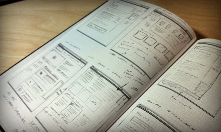 En este momento es importante organizar una sesión de Brainstorming. El equipo del proyecto se reúne junto con el cliente, en un lugar adecuado para ello. En este momento se hacen una serie de bocetos rápidos de 2 o 3 pantallas principales. La primera meta es conseguir un boceto simple en blanco y negro, la cual nos va a mostrar la estructura básica de la aplicación. Estos bocetos son rápidos de hacer y nos permiten probar amplios conceptos de la interfaz de la app.