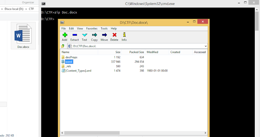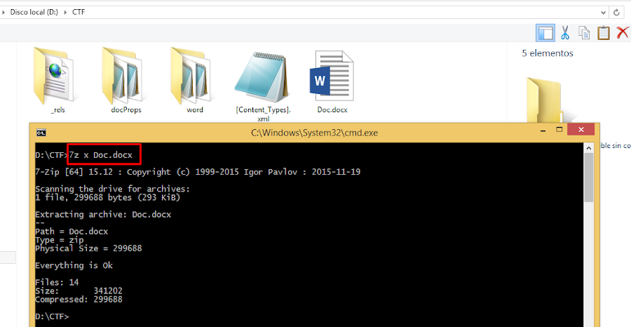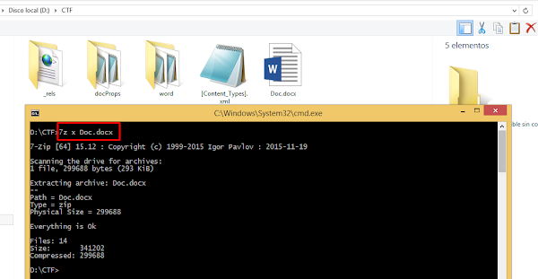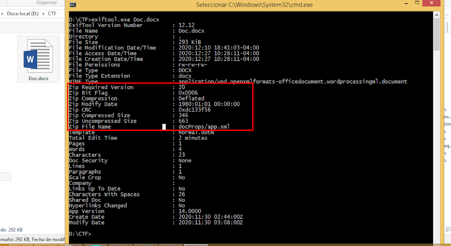 Primero observamos el contenido del documento, en esta ocasión es un Word con el nombre y extensión Doc.docx