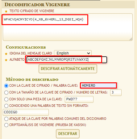 El cifrado Vigenère es un cifrado basado en diferentes series de caracteres o letras del cifrado César formando estos caracteres una tabla, llamada tabla de Vigenère, que se usa como clave
