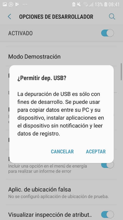 Tener activada la opción de Depuración de USB en tu Android. Esto se hace en Ajustes las opciones de desarrollador.