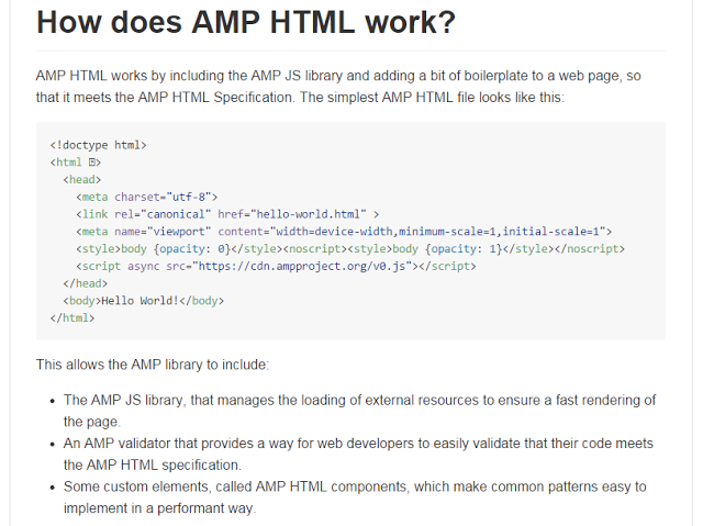 El primer ejemplo lo tienes aquí, avanza por la página hasta que localices el título "How does AMP HTML work?":