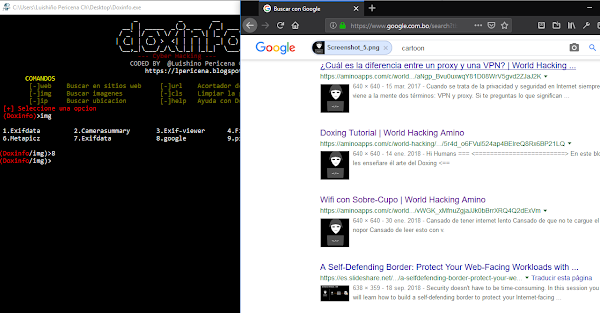 -Para hacer búsqueda desde imágenes ingresamos el comando img el numero 8 para hacer búsqueda desde google buscamos la imagen que deseemos buscar para obtener datos de la victima