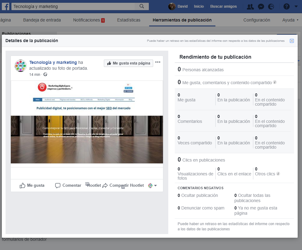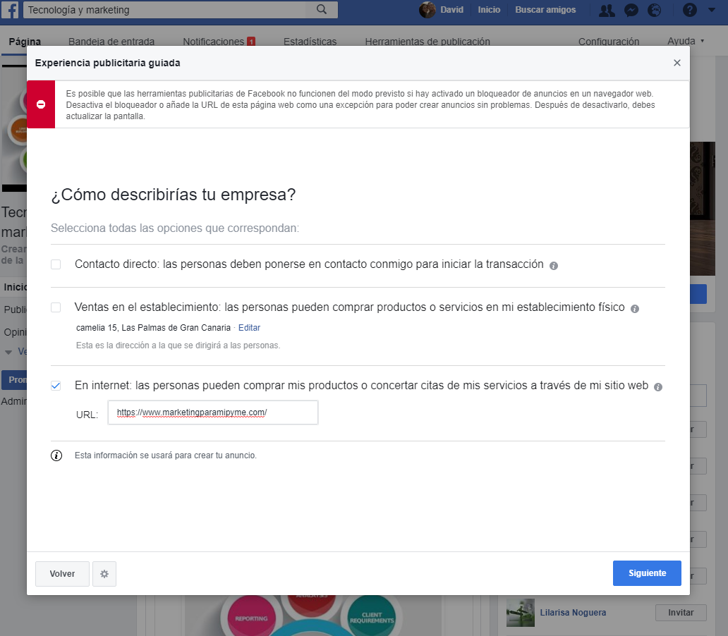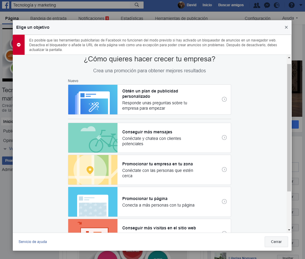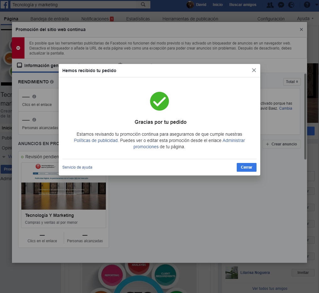 Si has seguido los pasos descritos. Felicidades, ya tienes acceso a un perfil de administrador anuncios de Facebook en tu Fanpage.