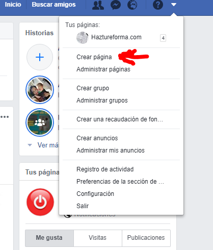 A continuación elegiremos la opción: crear página.