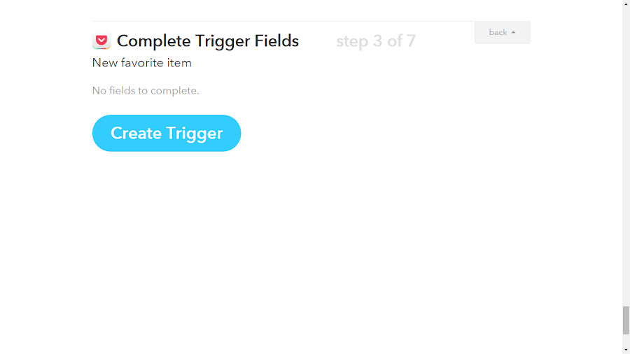 Paso 4) Una vez elegida mi acción concreta (New favorite item en mi caso), finalizo el proceso del "IF" dándole al botón "Create Trigger"