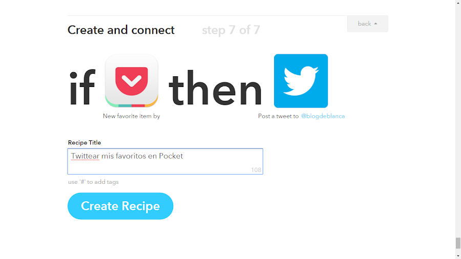 Paso 6) Poner un título a la receta y darle al botón de Create recipe: