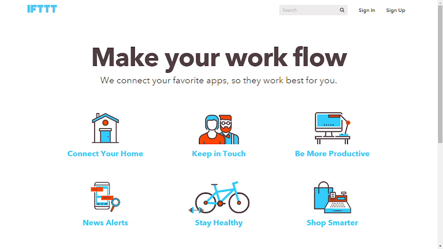 Simplemente esto, ya os hará comprender mejor lo que hace, pero dejadme que trate de explicarlo mejor:Ifttt mos permite crear una serie de "recetas" (ellos lo llaman así: recipes) que conectan unos productos con otros de modo que automaticemos tareas.