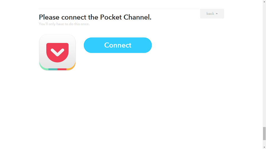 Entonces me dará la opción para que conecte mi cuenta a ifttt. En este caso, mi cuenta de Pocket: