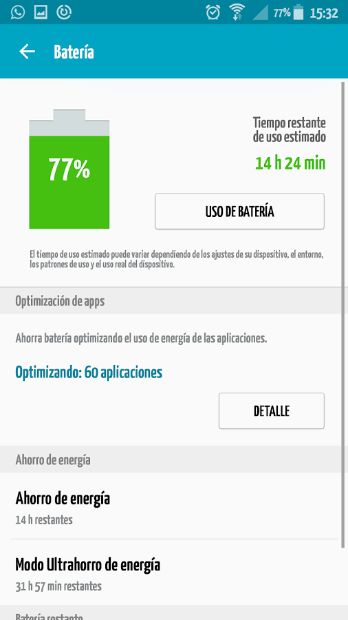 Por si lo miras algo más también podrás acceder a los menús de ahorro de energía y Ultra ahorro de energía con lo que si tienes poca bateria y esperas alguna llamada muy importante y necesitas la misma para tal fin con esto te durará mucho mas.