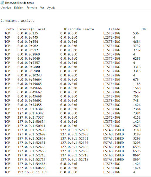 Se crea un archivos Datos.txt donde observares las conexiones activas.