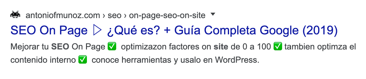 En algunos casos puede mostrar la fecha del contenido, las valoraciones en el caso o FAQs si existe ese tipo de marcado de datos estructurados en la web.