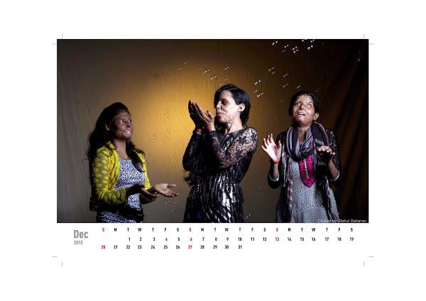 Un grupo de mujeres indias, víctimas de ataques con ácido, posan con ropa diseñada por una de ellas, Rupa. Fueron fotografiadas por Rahul Saharan para "enseñar su rostro más valiente". Un trabajo que ha tomado forma con la realización de un calendario que finaliza en febrero de 2016 y cuyas ventas irán destinadas a la rehabilitación de todas esas mujeres supervivientes de estos ataques en India.