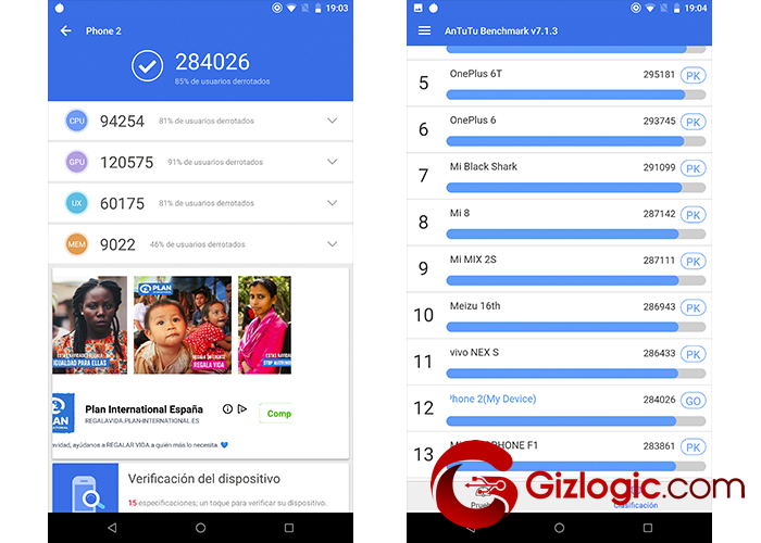 Como era de esperar, Phone 2 está equipado a la última con una hoja técnica que noquea a muchos candidatos de gama alta. Contamos con el Qualcomm Snapdragon 845 (octa core a 2.8 GHz) y acompañado de una GPU Adreno 630. La proteína de este músculo técnico la proporciona los 8 GB de RAM de tipo LPDDR4X. Con respecto al almacenamiento, echamos en falta más capacidad, sus 64 GB pueden quedarse cortos (se puede añadir una microSD de hasta 1 TB). Una memoria de tipo UFS 2.1 de gran utilidad para obtener un mejor rendimiento general.