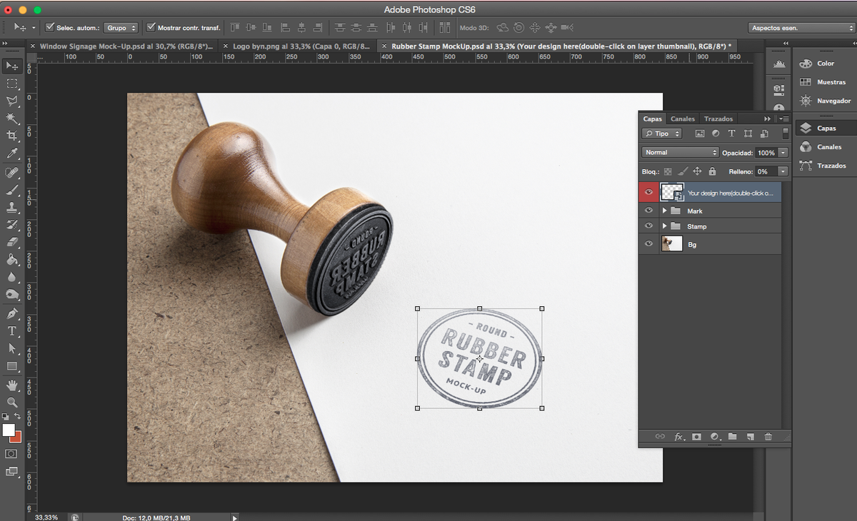Una vez que descargamos los Mockups que nos interesan vamos al lío. Para nuestro primer ejemplo hemos elegido este mockup que simula un sello.