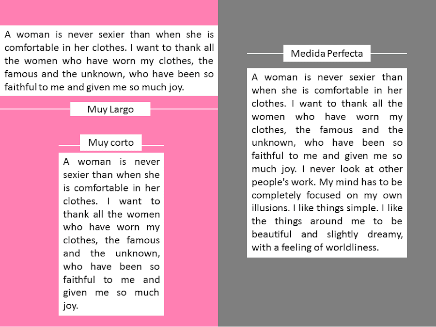 Que sucede cuando tratas de leer un periódico o una revista, con un espacio de lectura demasiado largo o demasiado corto, no te pierdes tratando de llegar a la siguiente linea.