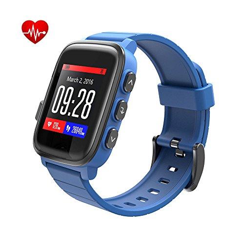 Es un reloj de carrera resistente al agua con medición de la frecuencia cardíaca en la muñeca