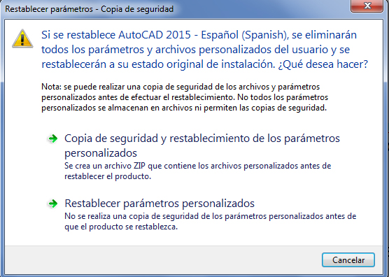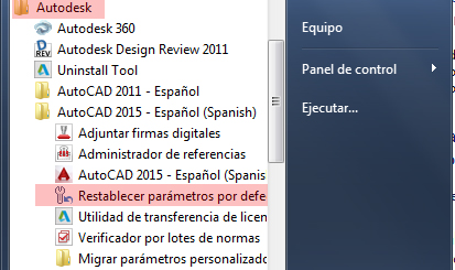 NOTA: No se podrá restablecer los valores por defecto de Autocad con el programa abierto, por lo que antes de realizar el tutorial cierra el programa Autocad. Hemos realizado este tutorial con el sistema operativo Windows 7.