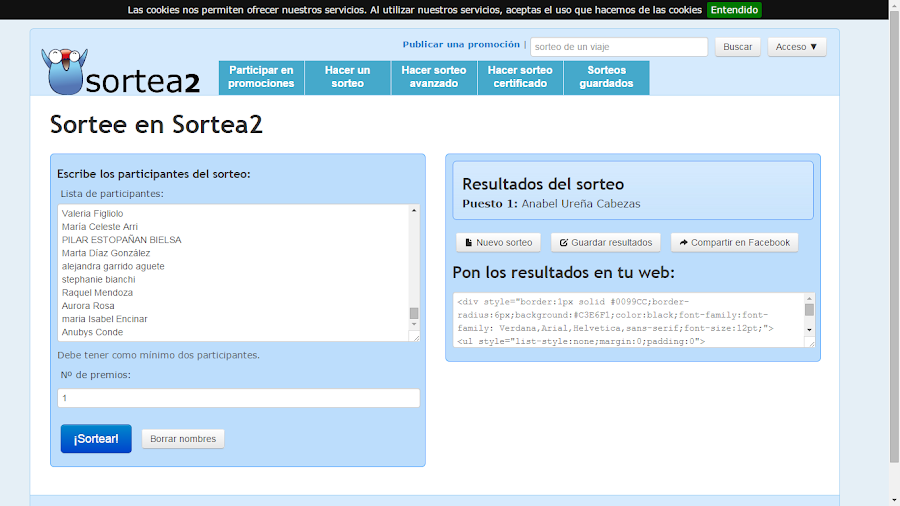 Total, que como lo avisé, pues me he cargado la mitad de las participaciones. Porque dije que no participarais si no ibais a aportar algo con sentido, y no me parece bien que haya gente que no haya participado por eso y sin embargo sortearlo entre gente que ha contestado cosas así.
