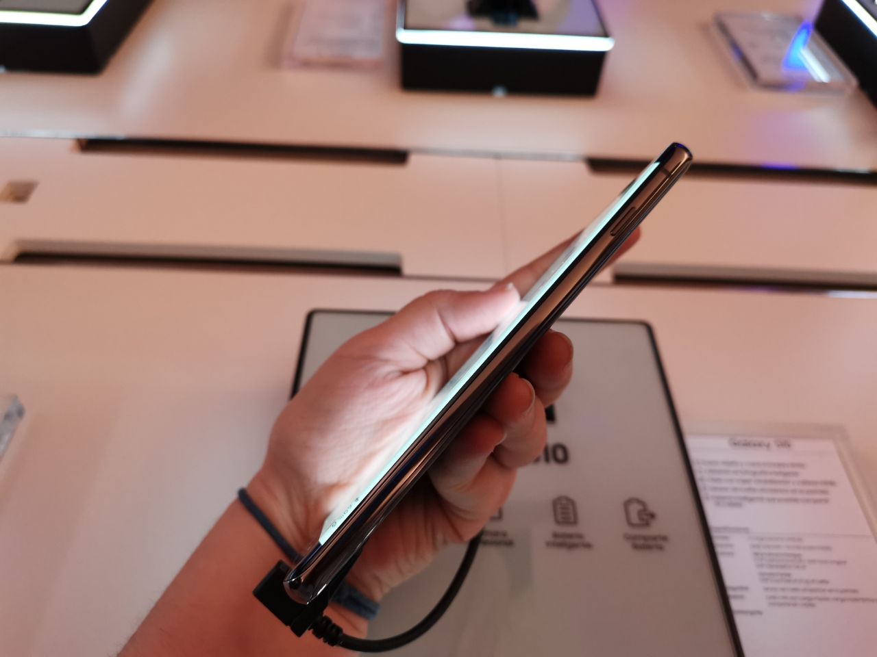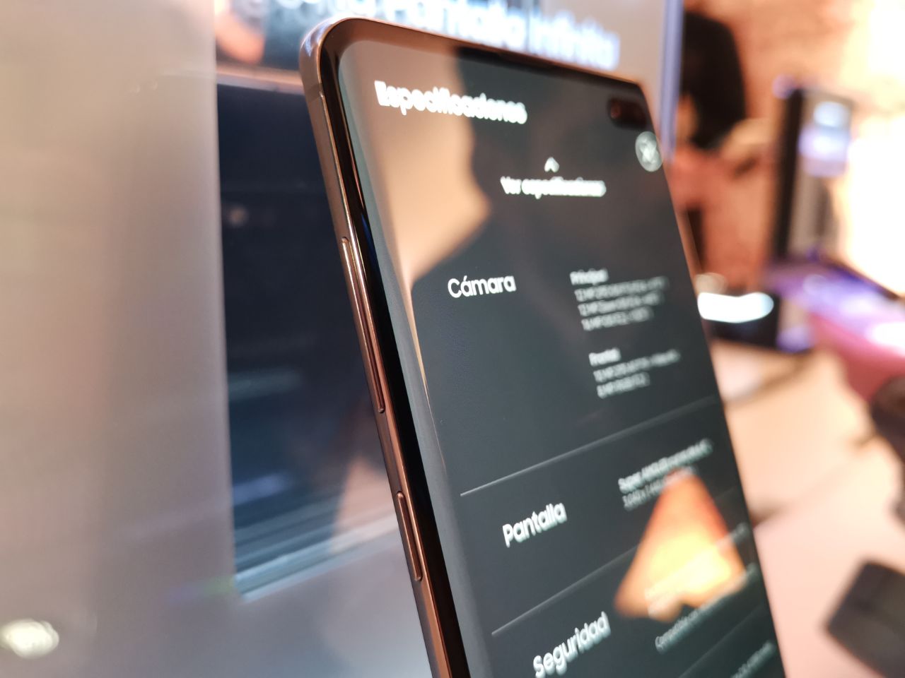En el caso de la cámara frontal, la que está escondida en el orificio, contamos con un sensor de 10 MP, apertura f/1.9 y grabación de vídeo en resolución QHD a 30 fps. Repetimos las mismas características del Samsung Galaxy S10e. Estamos deseosos por comprobar el desempeño de los sensores, los ajustes automáticos de la IA de Samsung y el procesamiento de imagen por software.