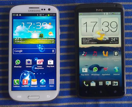 En un principio te llama la atención el gran tamaño de ambas pantallas, un pelín más grande la del S3, 4,8” frente a las 4,7” del HTC. Por otro lado, son dos terminales muy delgados y ligeros y una vez más, por lo menos a primera vista, da más sensación de “robusto” el HTC.