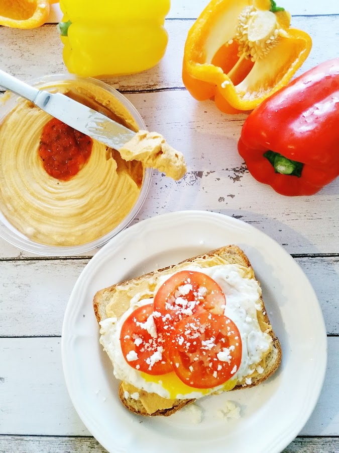Sándwich de huevo con Hummus de pimiento rojo asado