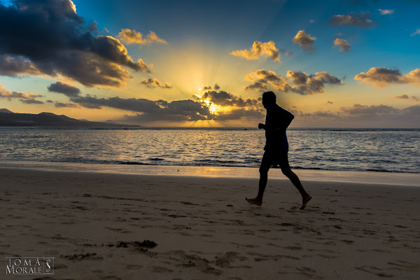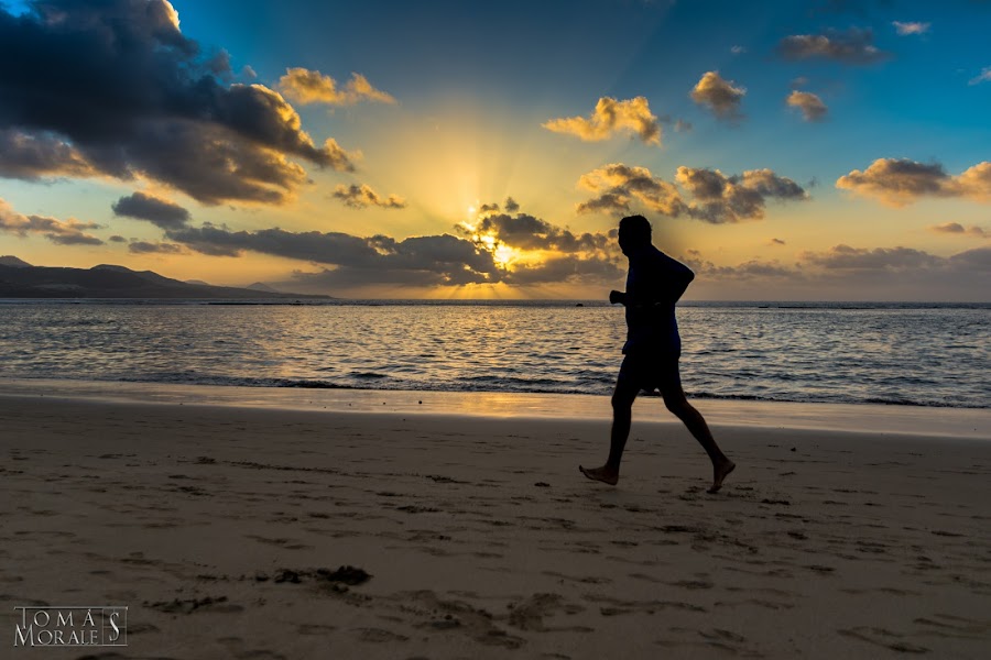 Nada más sano y saludable que hacer ejercicio al fresco que proporciona un atardecer en la playa de Las Canteras