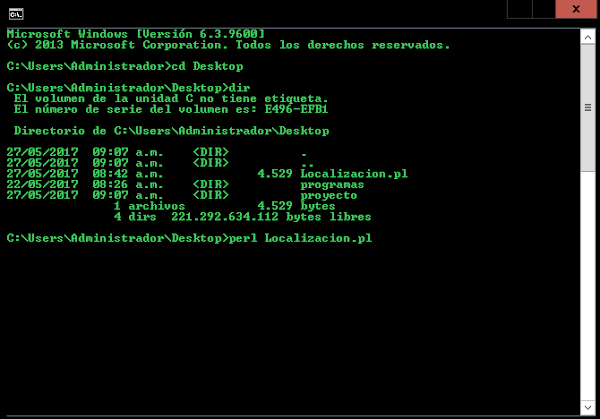 Una vez ubicado el archivo o el script escribimos perl Localizacion.pl