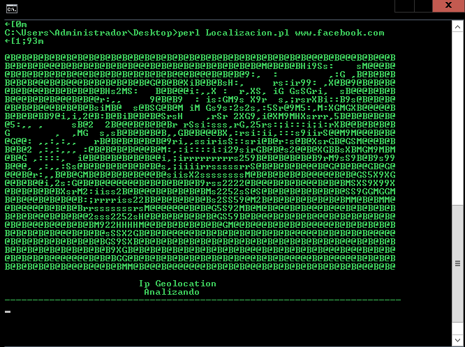 Escribimos perl localización.pl www.ejemplo.com Analizando los datos