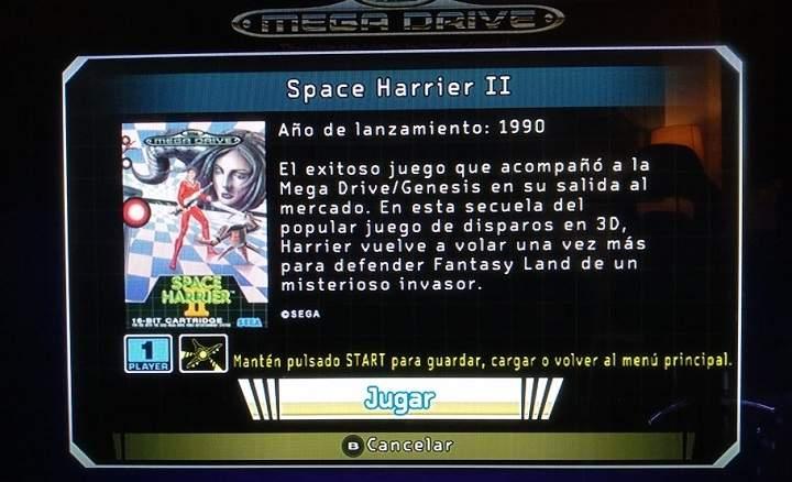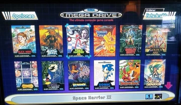 Si la Super Nintendo Mini tenía 20 juegos, SEGA ha decidido doblar la apuesta incluyendo 40 juegos en la memoria interna de la consola. Si bien hay algún juego olvidable, la verdad es que la lista de juegos es de lo más jugosa: Sonic, Castle of Illusion, Golden Axe, Gouls n Ghosts, Streets of Rage 2, Kid Chamaleon, Castlevania, Eternal Champions y muchos más (podéis consultar la lista completa AQUÍ).Un detalle interesante es que antes de comenzar un juego, se muestra una pequeña ficha donde podemos ver información relativa al título. Así, por ejemplo, si ejecutamos el Space Harrier II, nos enteraremos de que fue el juego que acompañó a la Mega Drive/Genesis en su salida al mercado en 1990. Por lo demás, el sistema también incluye 3 slots de guardado para cada juego, que podemos utilizar para salvar nuestras partidas y retomarlas en cualquier momento.