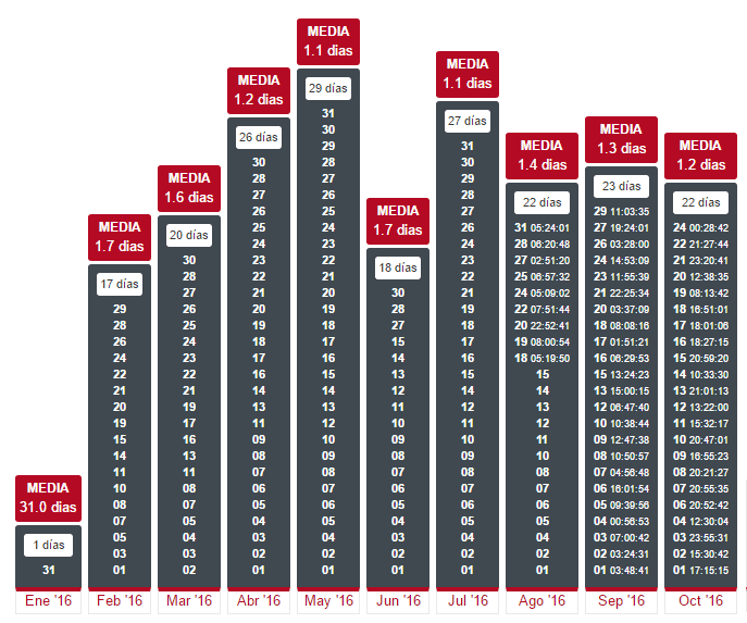 Aquí nos encontramos con un calendario en el que nos dice que evolucion a tenido en cada momento a golpe de vista, en vez utilizar la visión que teníamos arriba, de está manera es una forma rápida de saber en que momento subimos a la cima o caimos a los infiernos.