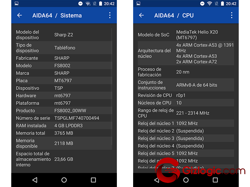 Características técnicas del Sharp Z2