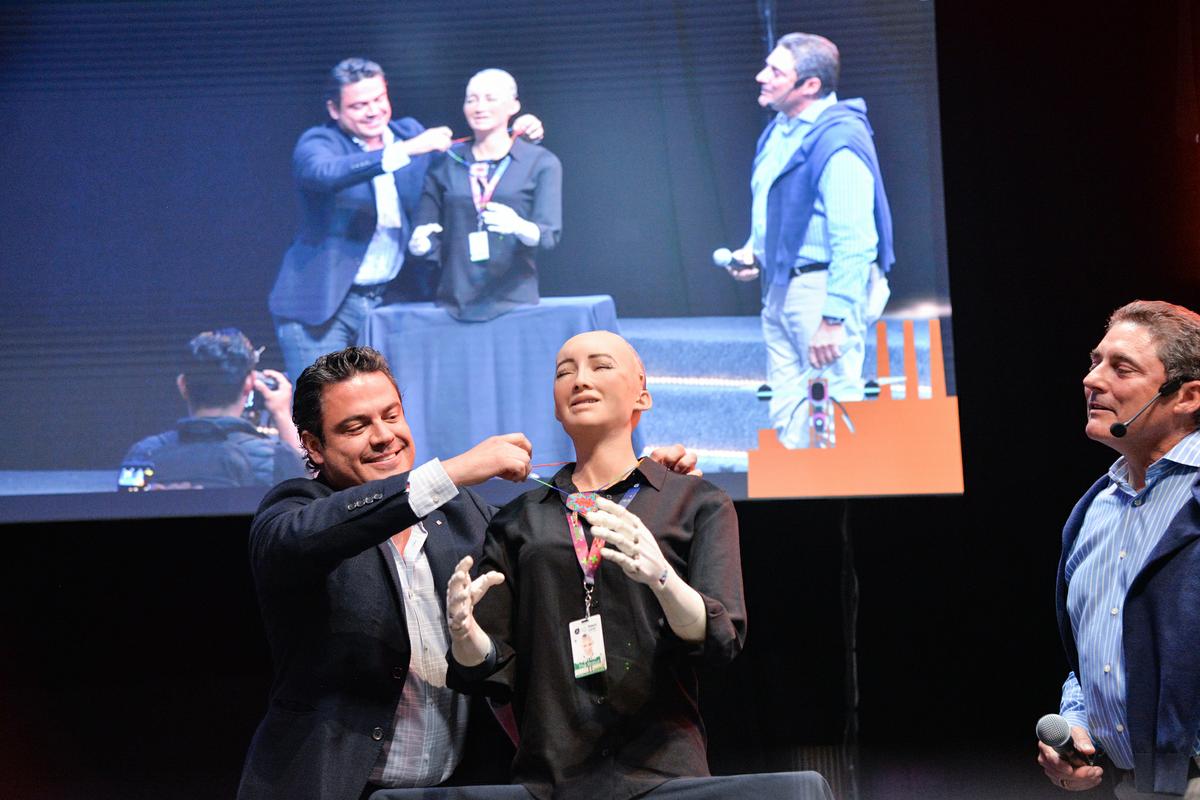 Esta presentación fue el punto de partida durante su conferencia en la Talent Land 2018, celebrada en Jalisco, México, a la que asistieron cerca de 30,000 personas, durante la cual habló de su creador, David Hanson, y de su empresa Hanson Robotics, que desde hace años se dedica a construir máquinas de IA para probar los límites de esta tecnología.