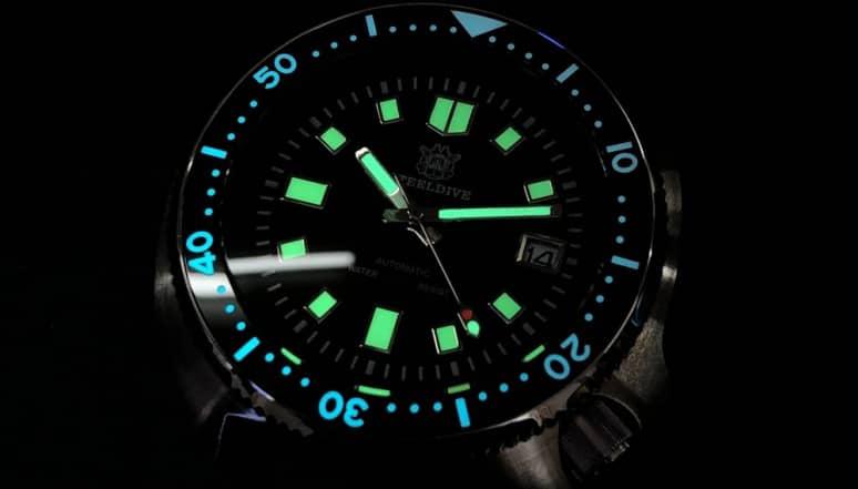 La esfera del Steeldive 1970 Capitan Willard está disponible en varios colores, como negro, verde y azul. En mi caso, elegí la versión en color negro mate.Los marcadores de hora aplicados y las agujas de estilo espada están cubiertos con una generosa cantidad de luminova C3, que brilla intensamente en la oscuridad y ofrece una legibilidad excelente en condiciones de poca luz.