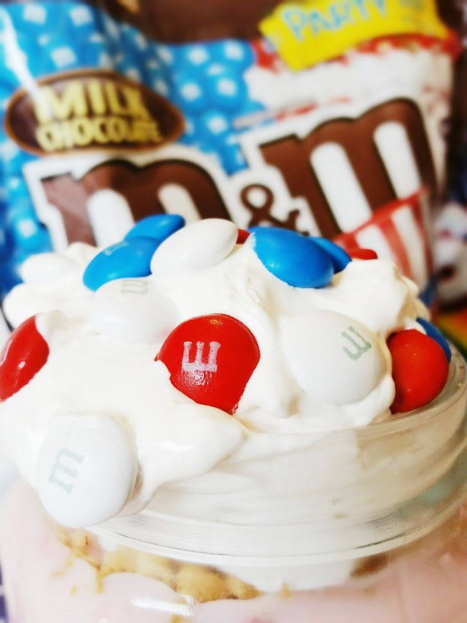 Strawberries Cups con yogurt y M&Ms® Red, White, & Blue Milk Chocolate