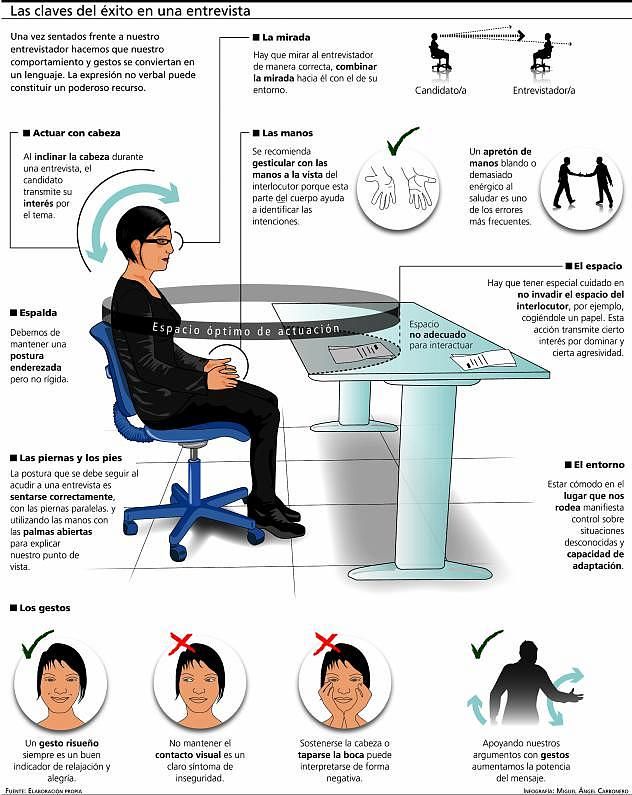 Crea una buena impresión, las primeras impresiones son de gran importancia. Muchos empresarios son capaces de, tras haber visto entrar por la puerta a un candidato, observarlo cómo da la mano, o la forma de sentarse, son capaces de decidir sobre su valía.