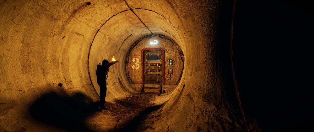 Baja por la entrada del túnel que hay en el exterior cerca del hangar nº 3 y dirígete hacia la derecha nada más bajar, mirando hacia los hangares.