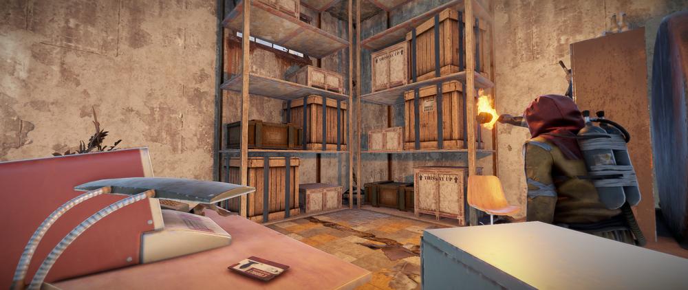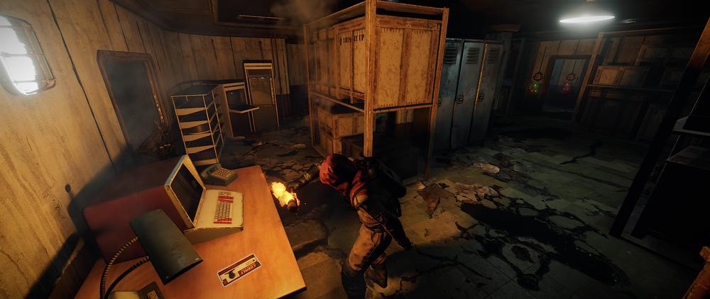 Loot: Detrás de la puerta azul encontrarás 4 cajas de madera o tipo militar y la preciada Tarjeta Roja encima de un escritorio.