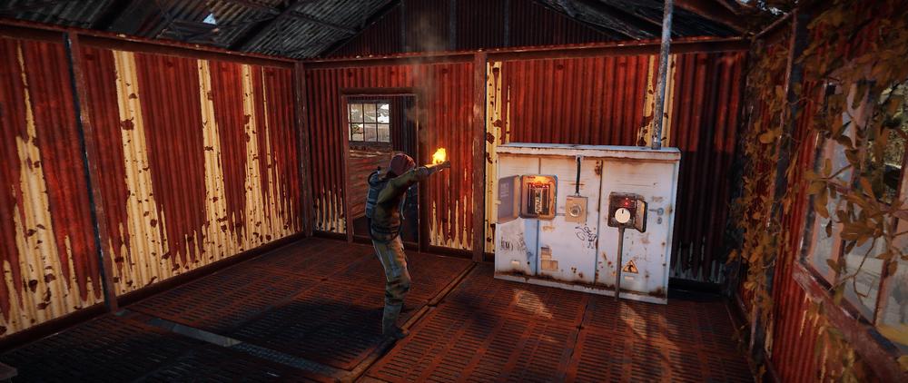 Pasa por la puerta de la habitación de la derecha que tiene los marcos corroídos, y coloca el fusible en la caja y activa el temporizador, ambas cosas.