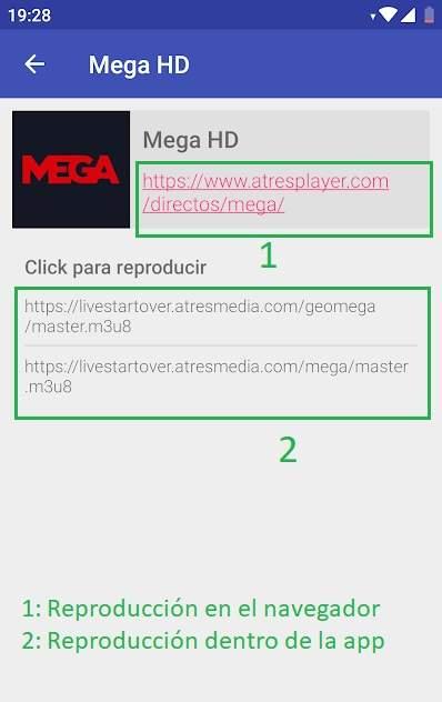 Otro enlace que nos permite abrir la retransmisión en directo en el reproductor nativo de la app de TDTChannels.