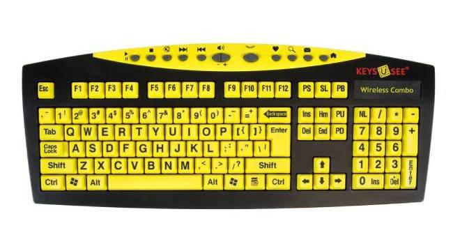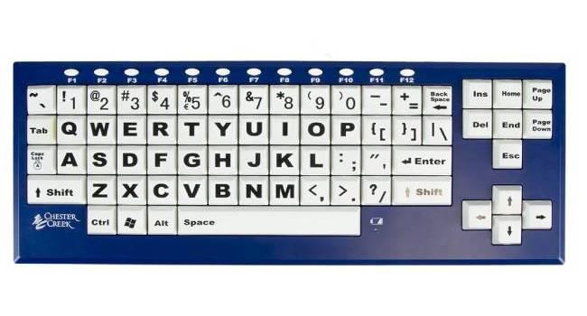 Este teclado es idóneo para personas con visión reducida porque hay un alto contraste entre el fondo y las letras y estas son más grandes y están más separadas, por lo que es mucho más fácil diferenciar y encontrar cada letra.