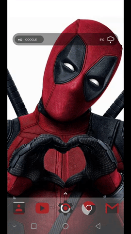 Este pequeño GIF que vemos aquí arriba nos muestra el mencionado tema de Deadpool para teléfonos Android. Se trata de una personalización basada en los colores rojo y negro, con un par de widgets oscuros de estética elegante.