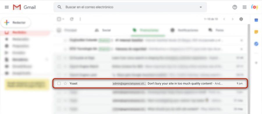 Esta mañana, después de haber pasado parte de la noche escribiendo este artículo sobre el evento de google. Miro el teléfono y tengo un email sin leer de Yoast (Si quieres que haga una súper guía de este plugin dejalo en un comentario) que dice: «No entierres tu sitio en demasiado contenido de calidad«.