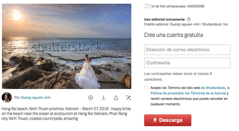 Tras ver esto, hablo con la pareja y a las pruebas me remito para decirles que ni se les ocurra contratar a este farsante. Estupefacción es la palabra adecuada para definir cómo nos quedamos todos, pero también mi enojo y enfado fueron en aumento de forma progresiva. Miro su página web, y en ella lo que encuentro es un montón de fotografía, que haciendo búsqueda, pertenecen todas a páginas como Shutterstock, Getty, Dreamstime y Fotolia entre otras páginas de fotografía de stock.