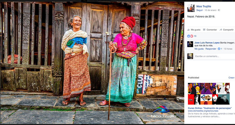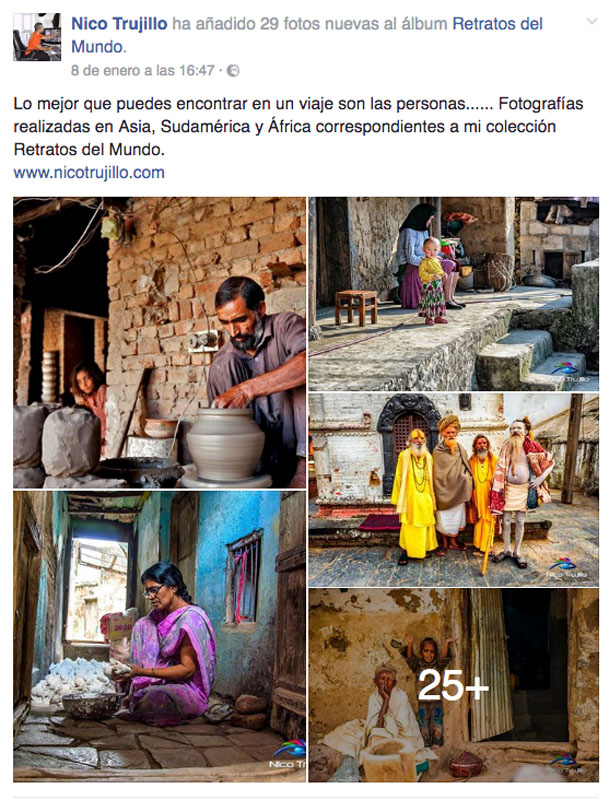 Ya hemos visto que en fotografía es un quiero y no puedo. Pilla todo lo que puede por ahí, y fantasea con que esos trabajos son suyos. Y yo me pregunto… ¿no tiene familia este hombre? ¿nadie se da cuenta de que no ha ido ni a África, ni a la India, ni a sudamérica, ni a ningún país para hacer esas fotos?