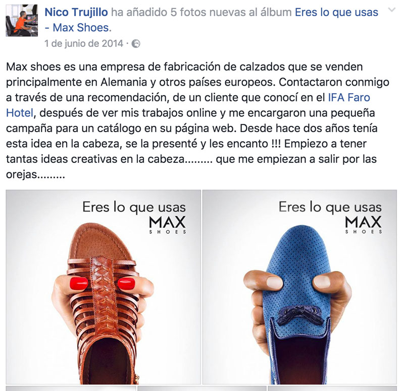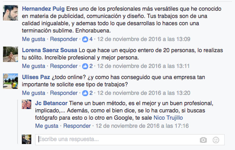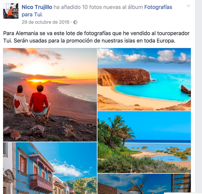 Este tal Nico Trujillo, con residencia y “base de operaciones” en Gran Canaria, lleva años haciendo esto y se trata de un auténtico embaucador, engañador, fingidor, impostor, simulador, embustero, mentiroso y tramposo, que hace creer a todos sus contactos y seguidores que es un gran creativo publicitario, pero además un auténtico crack de la fotografía. Y nada más lejos de la realidad.